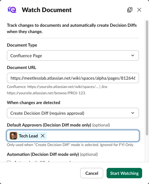 Decision Diffs from Slack